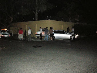 This driver below was traveling at such a high velocity evident at how from the corner where the accidents happen she is that she spun around and hit this electrical pole and cracked the wall behind the ivy.