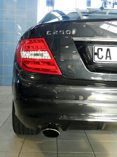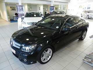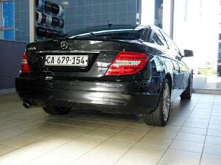 So this is an all black C Coupé as seen in Cape Town yesterday. I was pleasantly surprised to see even the CEILING is black! I have not seen that since my first car. Everyone thought I was nuts to have a sports Mini Station Wagon with a black interior including the ceiling but hey, it works! The glass panoramic roof is a nice touch but it is rather small though.