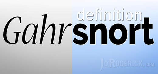 Definition: Gahrsnort Gahrsnort, verb, onomatopoeic. To gahrsnort, gahrsnorting, gahrsnorted (past tense). Common incorrect usage, gahrsnortovitz. The sound that is emitted from the back of one’s throat when a ‘grrr’ is not enough, and a ‘hah’ is too much. It...
